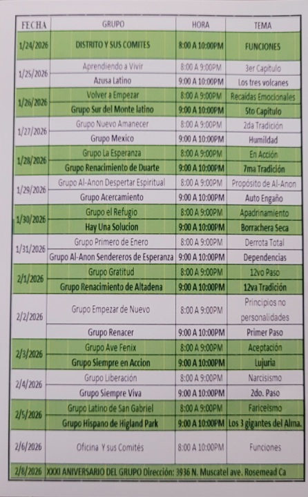 BIENVENIDOS A LA PAGINA DE ANIVERSARIOS DE LOS GRUPOS DEL DISTRITO # 35 AREA 05, Y ANIVERSARIOS DE SOBRIEDAD DE LOS MIEMBROS DE GRUPOS.